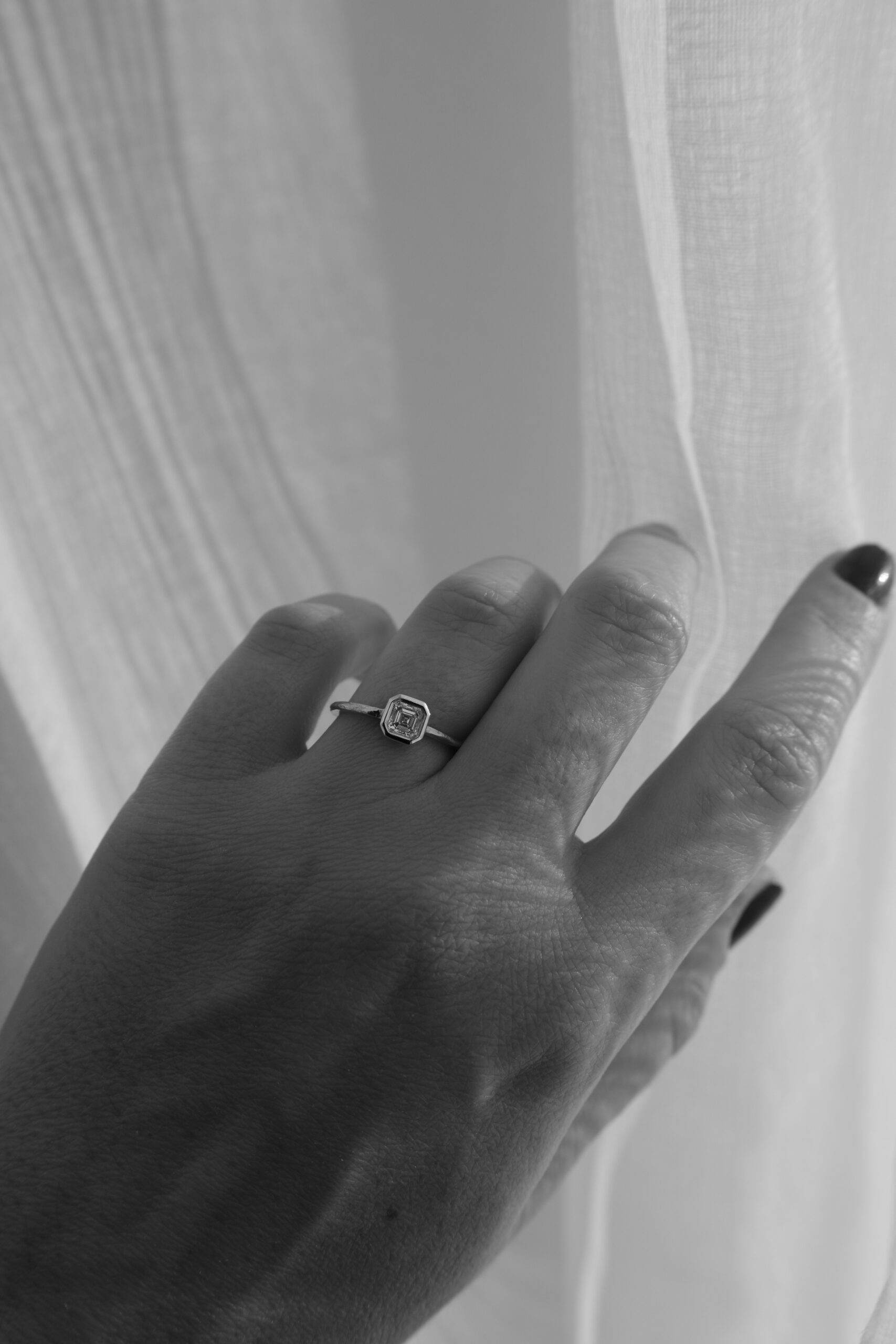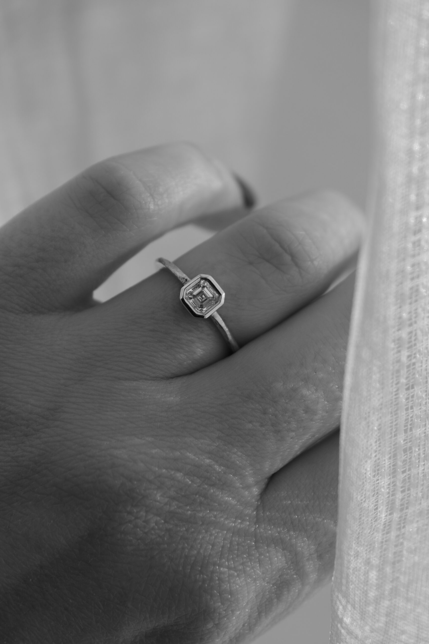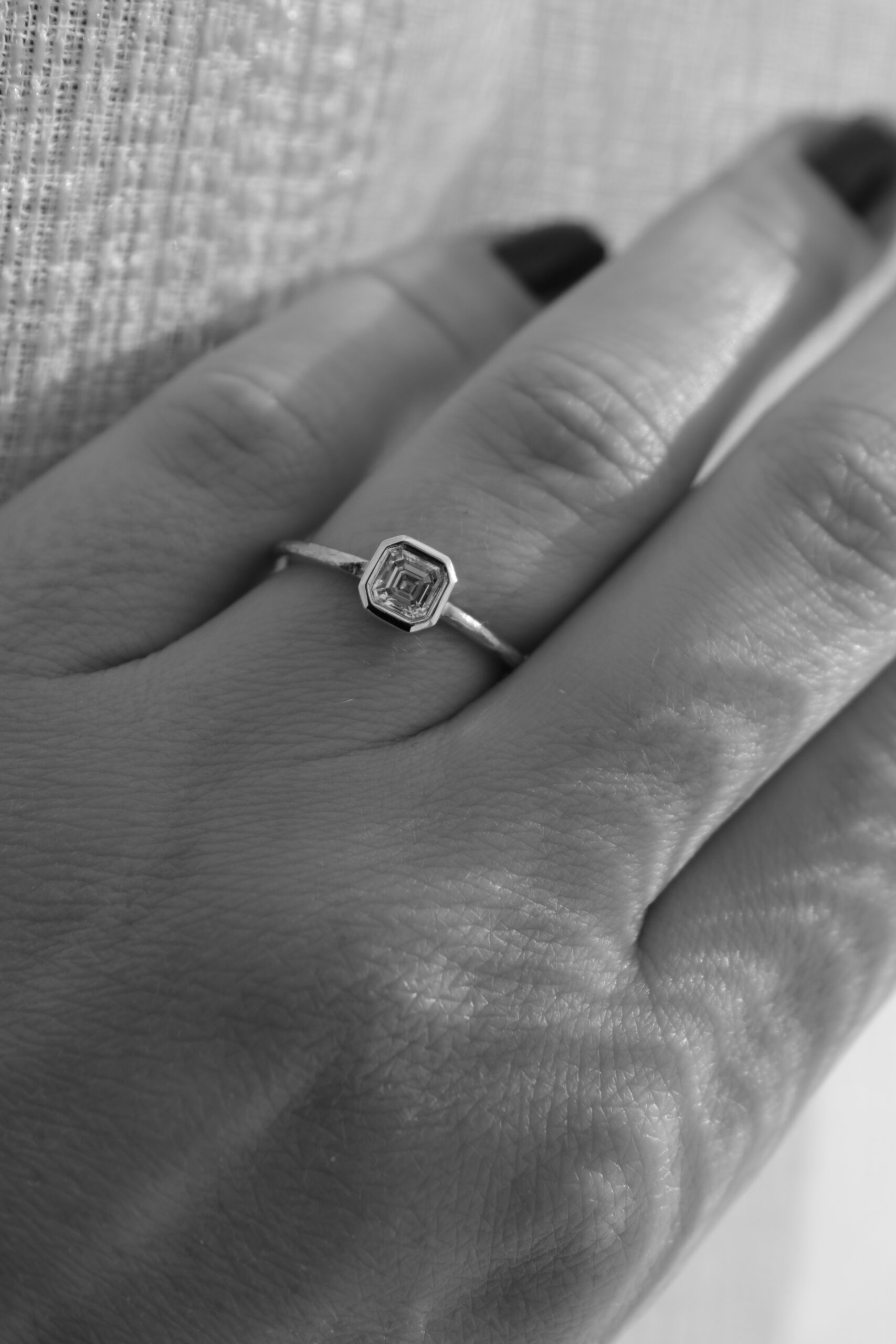 One of a Kind – Modern LAVA ring with asscher cut diamond
