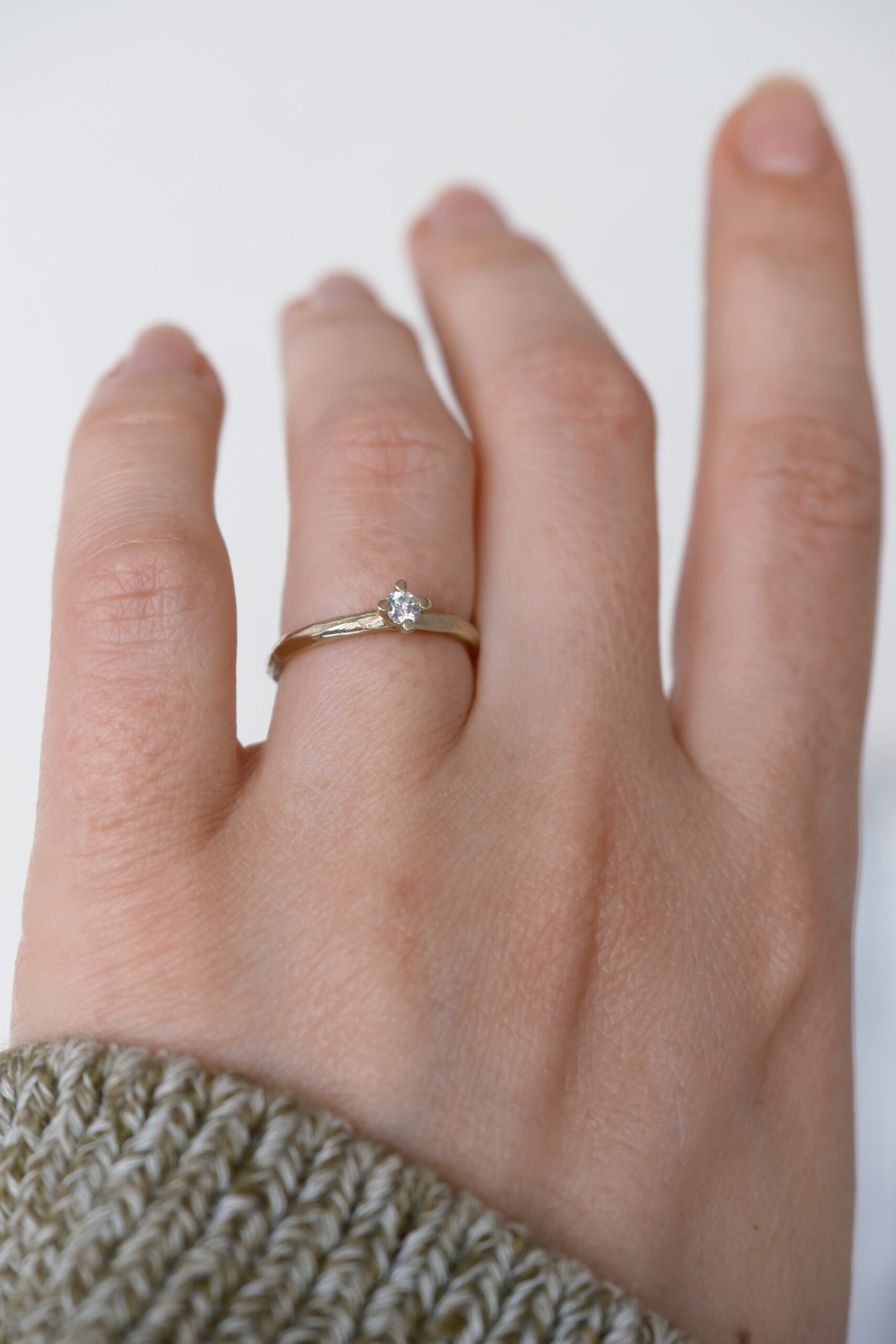 A rusztikus arany textúra és a finoman polírozott foglalat kontrasztja különleges mélységet ad az ékszernek – egyszerre kortárs és időtlen. Letisztult arányai visszafogott eleganciát sugároznak, így a gyűrű tökéletes választás mindennapi viseletre vagy különleges jelentésű ajándékként is.